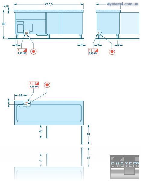 • охлаждаемые емкости, рабочая температура +2...+12 °C, высота 200 мм, вмещает около 130 бутылок 0,5л. в 4 х 1/1 GN, и около 200 в 6 х 1/1 GN;