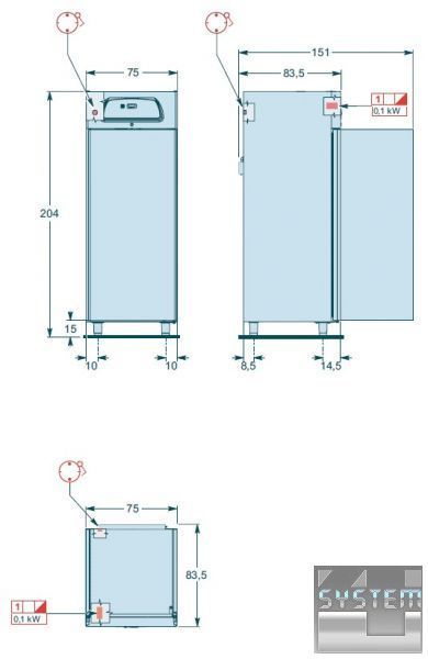Модели с индексом “..R” предназначены для подсоединения к удаленному холодильному агрегату Angelo Po, который можно заказать дополнительно (максимальное расстояние до шкафа – 10 метров).