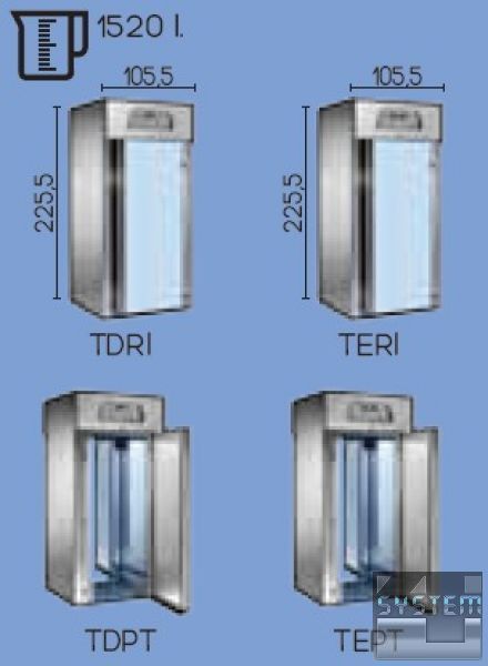В рабочую камеру объемом 1520 литров помещается 20 гастроемкостей GN 2x1/1 или противней 60x80 см или тележек Angelo Po для банкетов.