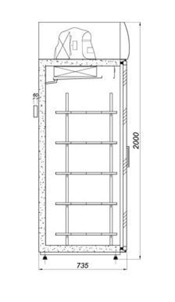 Внешний корпус холодильного шкафа выполнен из оцинкованой стали (окрашенной порошковым методом в белый цвет), внутренняя часть шкафа изготовлена из алюминиевого листа, тыльная часть и дно - из нержавеющей стали. Есть возможность регулировать положение металлических сетчатых пластифицированных полок, также присутствует выключатель освещения внутренней части шкафа. Профессиональный холодильный шкаф оснащен высококачественным, энергосберегающим агрегатом немецкой компании Danfoss, который расположен сверху. В процессе работы холодильного оборудования, конденсат испаряется автоматически.