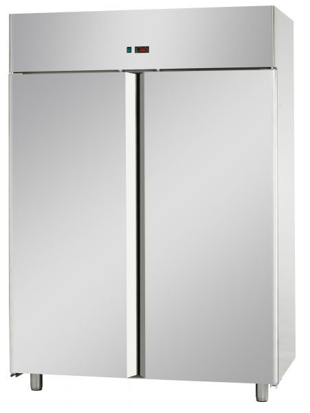 Данный шкаф выполнен полностью из нержавеющей стали, имеет один компрессор, две двери распашного типа с автодоводчиком.