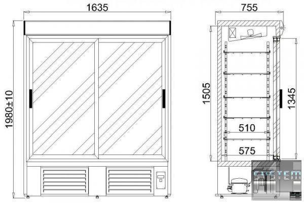- Однодверный холодильный шкаф со стеклом объемом 1400 литров.