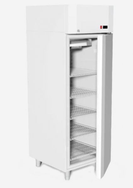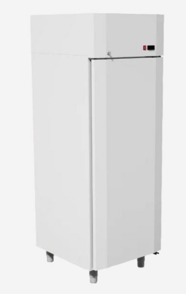 Одна глухая дверь с автоматическим блокирующим устройством, предусматривает возможность установки дверки на другую сторон. Рабочая температура составляет +1ºC...+10ºC при комнатной температуре +16...+35ºC, объем шкафа 563л, 5 полок-решеток покрытые полимерной краской с максимальной нагрузкой 30кг, толщина термоизоляции 70 мм.