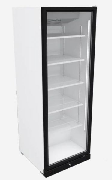 Одна стеклянная дверь с автоматическим блокирующим устройством. Рабочая температура составляет +1ºC...+10ºC при комнатной температуре +16...+30ºC, объем шкафа 749л, 5 полок-решеток покрытые полимерной краской с максимальной нагрузкой 57кг, толщина термоизоляции 45 мм.