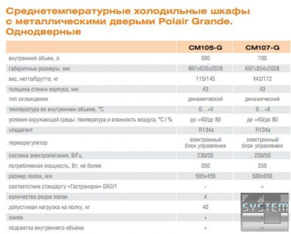 Технические характеристики холодильного шкафа Polair CМ105-G ШХ-0,5 (нерж.):