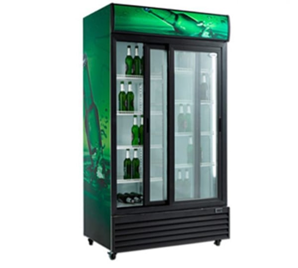 Холодильный вентилируемый шкаф Scan SD 1001 SL, оборудован стеклянными раздвижными дверьми типа "купе" с доводчиком, позиционируется как профессиональная, так и коммерческая серия холодильных шкафов для продажи и хранения напитков.