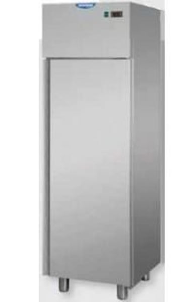Одна глухая дверь с автоматическим блокирующим устройством. Рабочая температура составляет 0ºC...+10ºC при комнатной температуре +43ºC, объем шкафа 400л, 3 полки-решетки с пластиковым покрытием для гастроемкостей размером GN 1/1, толщина термоизоляции 50 мм.