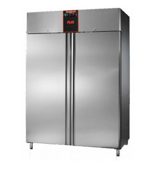 Две глухие двери с автоматическим блокирующим устройством. Рабочая температура составляет -2ºC...+8ºC, при температуре окружающей среды +43ºC, объем шкафа 1400л, 6 полок с пластиковым покрытием для гастроемкостей размером GN 2/1, толщина термоизоляции 60 мм, LED подсветка.