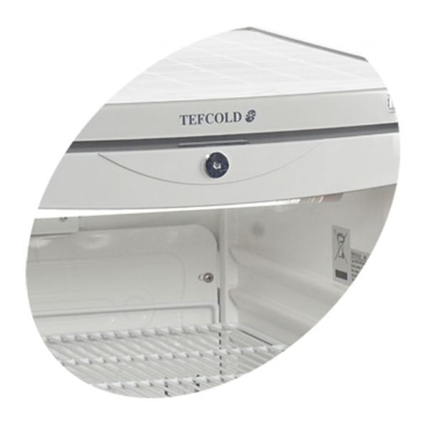 Застекленная конструкция двери и внутреннее освещение камеры выгодно предоставит выкладку товара и тем самым наглядно позволит определить место расположение нужного продукта, не открывая дверцу - это позволяет сохранить внутренний температурный режим холодильной камеры Tefcold.