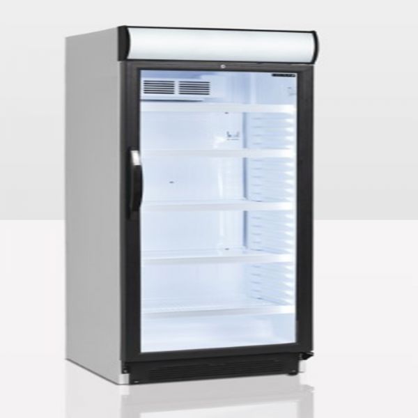 Светящейся лайтбокс вверху холодильного шкафа предоставляет возможность брендировать корпус холодильника-витрины. Таким образом, размещение логотипа реализуемого товара для рекламы позволит дополнительно привлечь потенциальных клиентов.