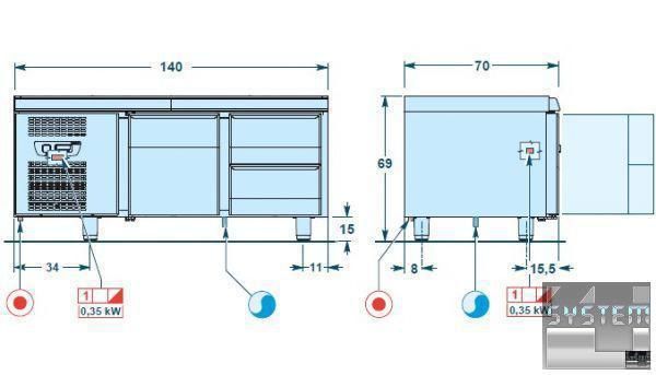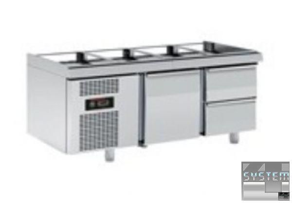 Холодильный стол Angelo Po 3G6SA2 с рамой для поддержки 4 настольных элементов тепловой модульной линии GAMMA 700, обеспечивает корректное хранение продуктов, рационализируя кухонное помещение и работу поваров.