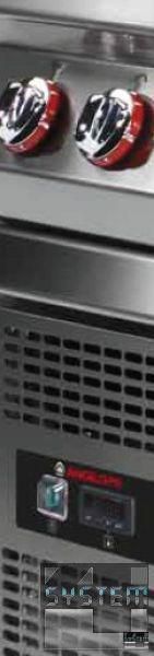 Каждый отсек имеет размер GN 1/1, комплектуется направляющими из нержавеющей стали AISI 304 и одной пластиковой полкой.