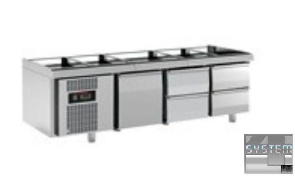 Холодильный стол Angelo Po 4G6SB4 с рамой для поддержки 5 настольных элементов тепловой модульной линии GAMMA 700, обеспечивает корректное хранение продуктов, рационализируя кухонное помещение и работу поваров.