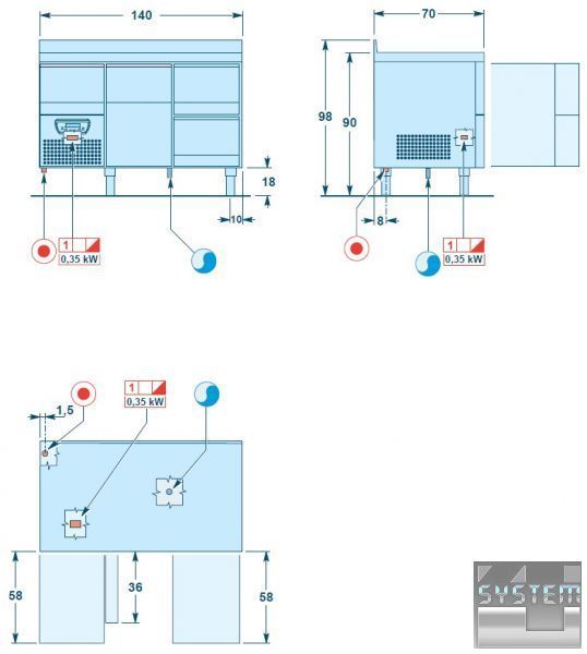 Холодильные столы Angelo Po линейки 6TE - столы со встроенными холодильными агрегатами глубиной 70 см с выдвижным ящиком GN 1/1, который расположен на холодильном блоке, что увеличивает емкость данного оборудования. Объем ящика 24,6 л, размеры: 30,5x54,8x14,7 см.