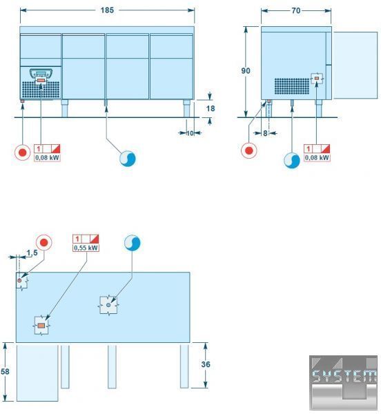 Холодильные столы Angelo Po линейки 6TE - столы со встроенными холодильными агрегатами глубиной 70 см с выдвижным ящиком GN 1/1, который расположен на холодильном блоке, что увеличивает емкость данного оборудования. Объем ящика 24,6 л, размеры: 30,5x54,8x14,7 см.