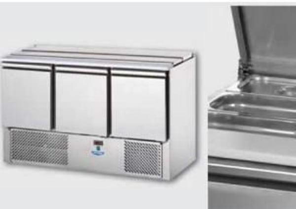 Холодильный стол с откидной крышкой предназначен для приготовления салатов, для охлаждения заготовок для пиццы и может использоваться как для временного хранения и обработки продуктов питания, десертов, так и как отдельный элемент холодильного оборудования.