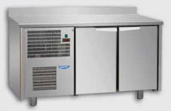 Холодильный стол DGD с робочим агрегатом с левой стороны, оборудован двумя дверьми, так же столешница имеет задний бортик высотой 100 мм, в отделениях полка GN1/1, так же в каждом отделении, автоматическая разморозка, гранитная столешница, полезный объем - 310 л.