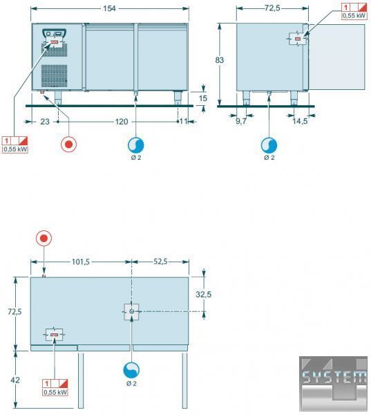 Холодильное отделение подходит для использования 14 гастроемкостей EN 60x40 см;