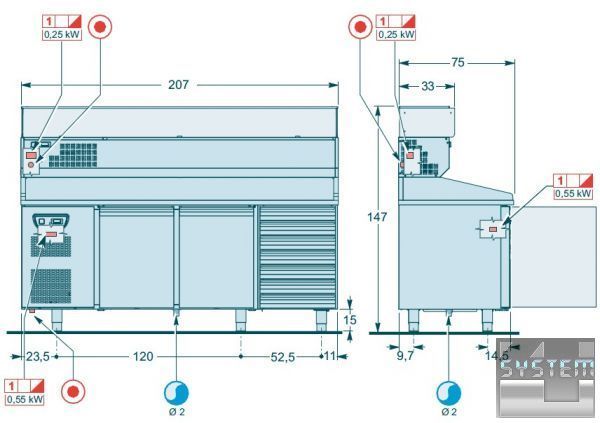 Температурн. режим, отделение/витрина,°C: +2 до +8°C/ +2 до +10°C