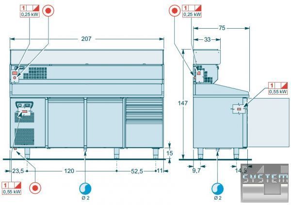 Технические характеристики холодильного стола для пиццы - пиццеолы Angelo Po BPZ203B: