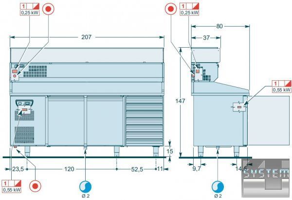Технические характеристики холодильного стола для пиццы - пиццеолы Angelo Po BPZ207A: