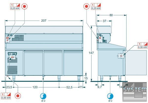 Технические характеристики холодильного стола для пиццы - пиццеолы Angelo Po BPZ207S: