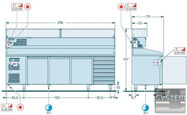 Технические характеристики холодильного стола для пиццы - пиццеолы Angelo Po BPZ253A: