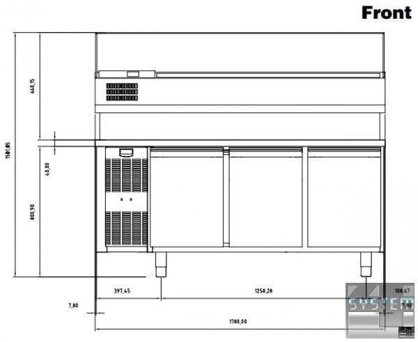 Профессиональный стол с охлаждением имеет габаритные размерами: 1780мм (длина), 700мм (глубина), 1501мм (высота).