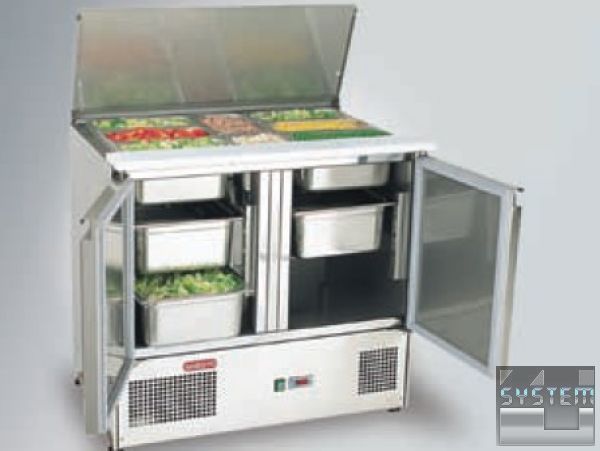 Компания Angelo Po предлагает линейку охлаждаемых столов для приготовления пиццы и салатов. Данная модель спроектирована и произведена с учетом особенностей хранения салатов.