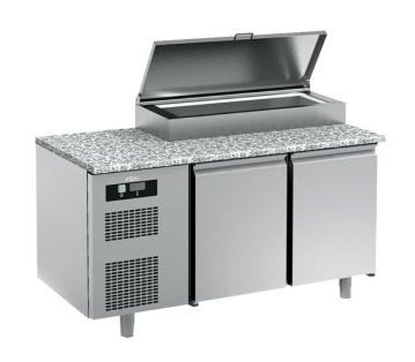 - Рабочая поверхность из гранита и холодильная полка из нержавеющей стали AISI 304 (KBP…G)