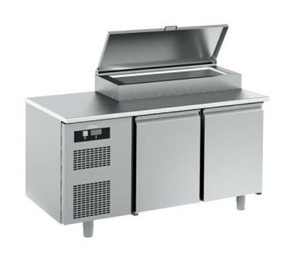 - Рабочая поверхность из нержавеющей стали AISI 304, охлаждаемый поддон с шарнирной крышкой из нержавеющей стали AISI 304 с поверхностью для порционирования из пищевого нейлона (KBP41X). Включена пара направляющих из нержавеющей стали AISI 304 для вставления в шкафчик гастроемкостей GN 1/1.