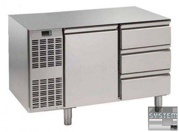 Морозильный стол Electrolux 728553, без столешницы, объёмом 265л., температурный режим работы -2…+10°С, 1 дверь и 3 выдвижных ящика 1/3, система автоматической разморозки и испарения, изоляция толщиной 50мм., цифровой дисплей, в комплекте 1 полка решетка GN 1/1 (до 6 на одно отделение), климат класс +43°С, слив, скруглённые углы, исполнение нерж. сталь AISI 304