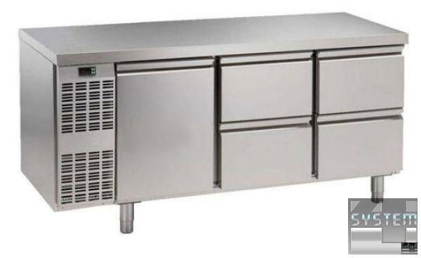 Долодильный стол Electrolux 728241, без борта, объёмом 420л., температурный режим работы -2…+10°С, 1 дверь и 4 выдвижных ящика 1/2, система автоматической разморозки и испарения, изоляция толщиной 50мм., цифровой дисплей, в комплекте 1 полка решетка GN 1/1 (до 6 на одно отделение), климат класс +43°С, слив, скруглённые углы, исполнение нерж. сталь AISI 304