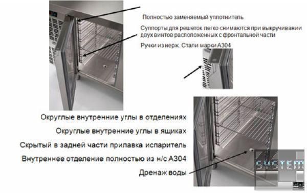 - Камера стола выполнена из нерж. пищевой стали AISI 304.