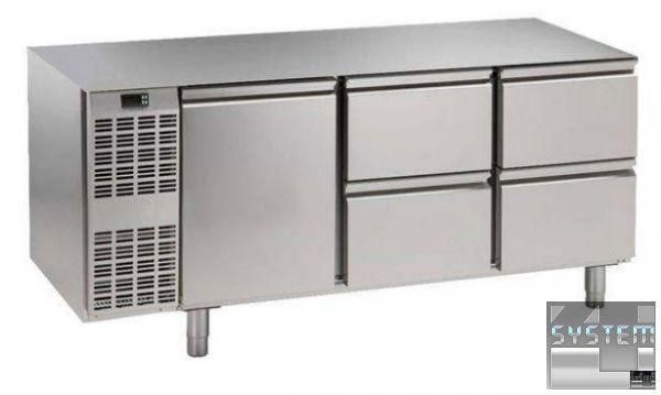 Холодильный стол Electrolux 728559, без столешницы объёмом 420л., температурный режим работы -2…+10°С, 1 дверь и 4 выдвижных ящика 1/2, система автоматической разморозки и испарения, изоляция толщиной 50мм., цифровой дисплей, в комплекте 1 полка решетка GN 1/1 (до 6 на одно отделение), климат класс +43°С, слив, скруглённые углы, исполнение нерж. сталь AISI 304