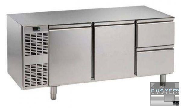 Холодильный стол Electrolux 728557, без столешницы, объёмом 420л., температурный режим работы -2…+10°С, 2 двери и 2 выдвижных ящика 1/2, система автоматической разморозки и испарения, изоляция толщиной 50мм., цифровой дисплей, в комплекте 2 полки решетки GN 1/1 (до 6 на одно отделение), климат класс +43°С, слив, скруглённые углы, исполнение нерж. сталь AISI 304