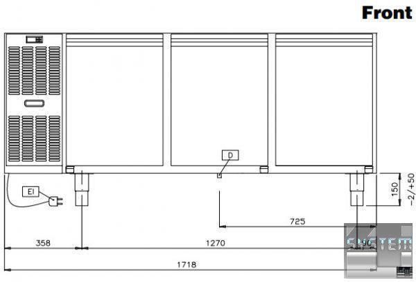 Профессиональный стол с охлаждением имеет габаритные размерами: 1721мм (длина), 700мм (глубина), 800мм (высота).