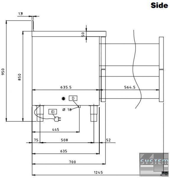 Профессиональный стол с охлаждением имеет габаритные размерами: 1238мм (длина), 700мм (глубина), 850мм (высота).