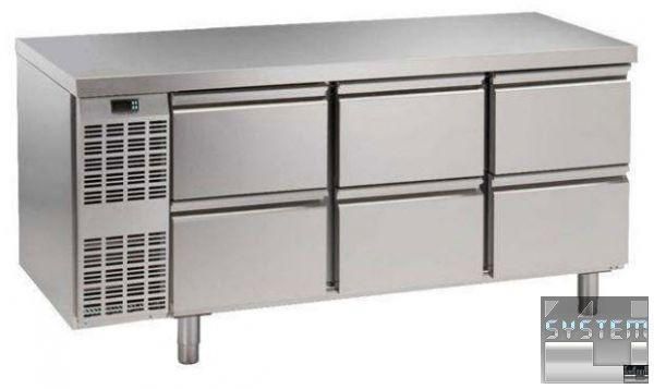 Холодильный стол Electrolux 728242, без борта, объёмом 420л., температурный режим работы -2…+10°С, 6 выдвижных ящиков 1/2, система автоматической разморозки и испарения, изоляция толщиной 50мм., цифровой дисплей, климат класс +43°С, слив, скруглённые углы, исполнение нерж. сталь AISI 304