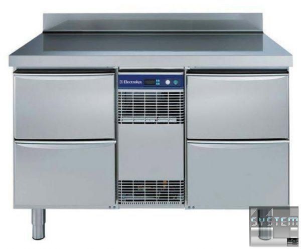 Холодильный стол Electrolux 726555, с бортом 100 мм, объёмом 290л., 4 выдвижных ящика 1/2, температурный режим работы -2…+10°С, система автоматической разморозки и испарения, изоляция толщиной 60мм., электронное микропроцессорное управление с дисплеем, климат класс +43°С, скруглённые углы, модульная конструкция дверей, пониженное энергопотребление, исполнение нерж. сталь AISI 304