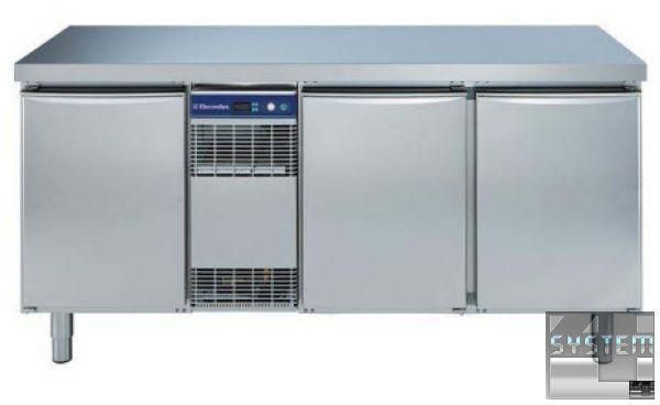 Холодильный стол Electrolux 726559, трёхдверный без борта, объёмом 440л., температурный режим работы -2…+10°С, система автоматической разморозки и испарения, изоляция толщиной 60мм., электронное микропроцессорное управление с дисплеем, в комплекте 3 полки решетки GN 1/1 (до 4 на одно отделение), климат класс +43°С, скруглённые углы, модульная конструкция дверей, пониженное энергопотребление, исполнение нерж. сталь AISI 304