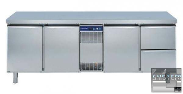 Холодильный стол Electrolux 726572, без борта, объёмом 590л., 3 двери и 2 выдвижных ящика 1/2, температурный режим работы -2…+10°С, система автоматической разморозки и испарения, изоляция толщиной 60мм., электронное микропроцессорное управление с дисплеем, в комплекте 3 полки решетки GN 1/1 (до 4 на одно отделение), климат класс +43°С, скруглённые углы, модульная конструкция дверей, пониженное энергопотребление, исполнение нерж. сталь AISI 304