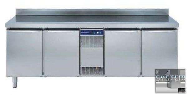 Холодильный стол Electrolux 726573, четырёхдверный с бортом 100 мм, объёмом 590л., температурный режим работы -2…+10°С, система автоматической разморозки и испарения, изоляция толщиной 60мм., электронное микропроцессорное управление с дисплеем, в комплекте 4 полки решетки GN 1/1 (до 4 на одно отделение), климат класс +43°С, скруглённые углы, модульная конструкция дверей, пониженное энергопотребление, исполнение нерж. сталь AISI 304