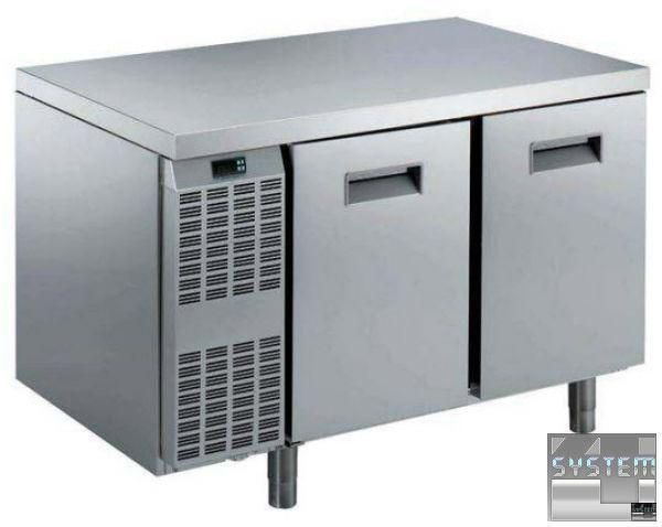Холодильный стол Electrolux 726139, двухдверный без борта, объёмом 265л., температурный режим работы -2…+10°С, система автоматической разморозки и испарения, изоляция толщиной 50мм., цифровой дисплей, в комплекте 2 полки решетки GN 1/1, климат класс +43°С, исполнение нерж. сталь AISI 304