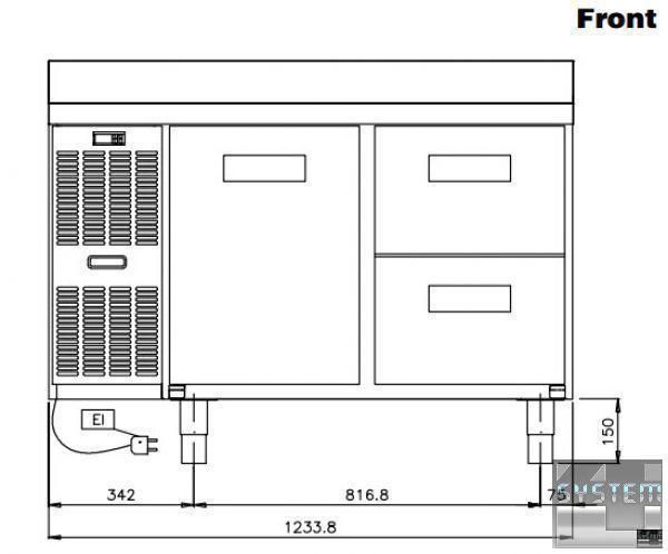 Профессиональный стол с охлаждением имеет габаритные размерами: 1238мм (длина), 700мм (глубина), 850мм (высота).