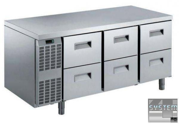 Холодильный стол Electrolux 727180, без борта бъёмом 415л., температурный режим работы -2…+10°С, 6 выдвижных ящиков 1/2, система автоматической разморозки и испарения, изоляция толщиной 50мм., цифровой дисплей, климат класс +43°С, исполнение нерж. сталь AISI 304