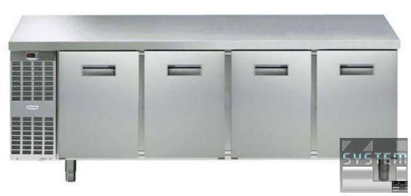 Холодильный стол Electrolux 727008, четырехдверный без борта, объёмом 560л., температурный режим работы -2…+10°С, система автоматической разморозки и испарения, изоляция толщиной 50мм., цифровой дисплей, в комплекте 4 полки решетки GN 1/1, климат класс +43°С, исполнение нерж. сталь