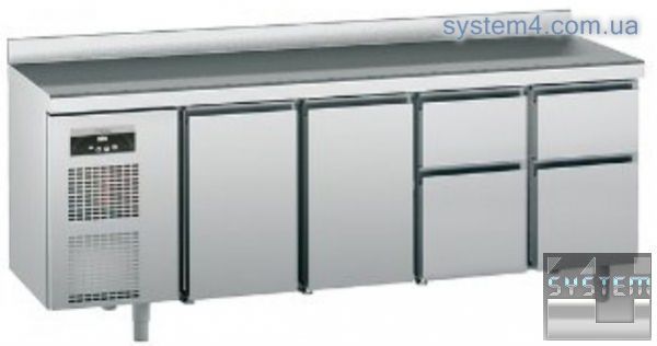 Несущий каркас выполнен из нержавеющей стали AISI 304 . Толщина изоляции 60 мм, она изготовлена из полиуретана без использования CFC. Глубина 70 см - GN 1/1. Рабочий стол высотой 60 мм выполнен из нержавеющей стали AISI 304 с звукопоглощающей разделительной панелью. Предлагаются варианты без рабочего