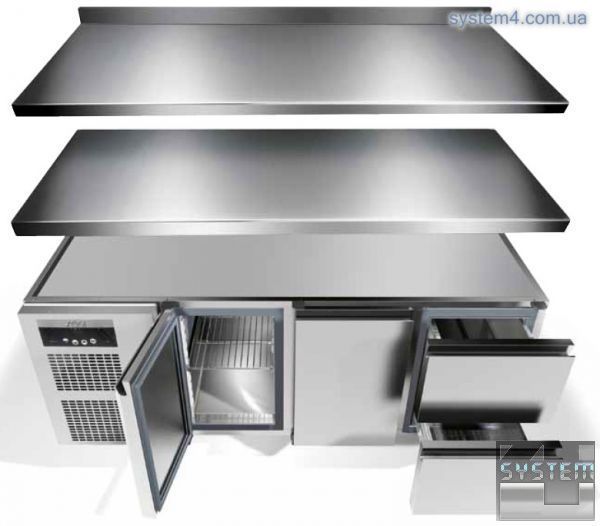 Несущий каркас выполнен из нержавеющей стали AISI 304 . Толщина изоляции 60 мм, она изготовлена из полиуретана без использования CFC. Глубина 70 см - GN 1/1. Рабочий стол высотой 60 мм выполнен из нержавеющей стали AISI 304 с звукопоглощающей разделительной панелью. Предлагаются варианты без рабочего