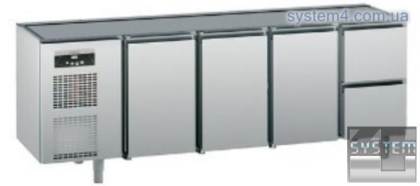 Несущий каркас выполнен из нержавеющей стали AISI 304 . Толщина изоляции 60 мм, она изготовлена из полиуретана без использования CFC. Глубина 70 см - GN 1/1. Рабочий стол высотой 60 мм выполнен из нержавеющей стали AISI 304 с звукопоглощающей разделительной панелью. Предлагаются варианты без рабочего
